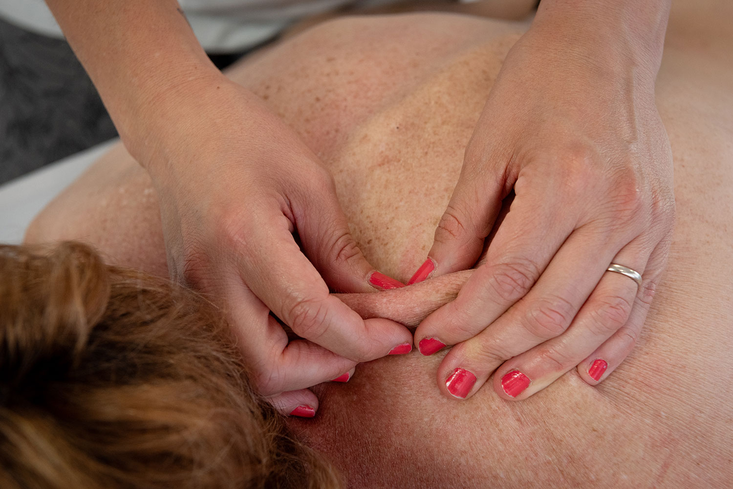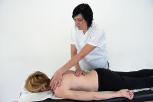 Massaggio decontratturante sito specifico con tecniche di percussione, impastamento e frizione con manovre di stretching e mobilizzazione .